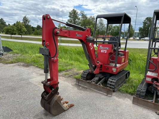 Smidig minigrävare Hinowa DM 13 Årsmodell: 2007 Tekniska data: Vikt 1200 – 1300 kg Grävdjup max 2,20 m Bredd 900 - 1100 mm, Bandbreddning Sväng 360/90+45 Motor Perkins Diesel 14 hk Tillbehör: Normalskopa 3 tänder 400 mm Kabelskopa 230 mm Planeringsskopa 550 mm Anpassat transportsläp för bil kan köpas till.