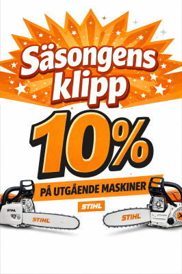 Nu när snön smälter bort är det snart dax för att röja i trädgården. Passa på att kitta upp dig med förra säsongens maskiner till bra priser.